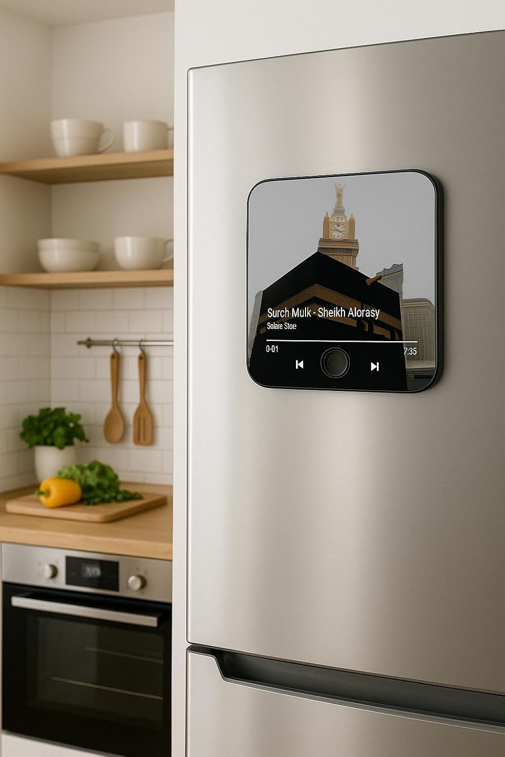 Listen to beautiful Quran recitation anytime with this compact and portable Quran Magnet. Designed to attach easily to your fridge or any metal surface, it keeps the words of Allah close to you throughout the day. Simple controls and clear sound make it perfect for both adults and children.